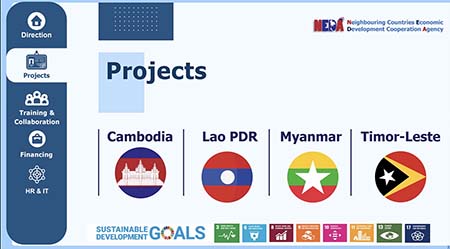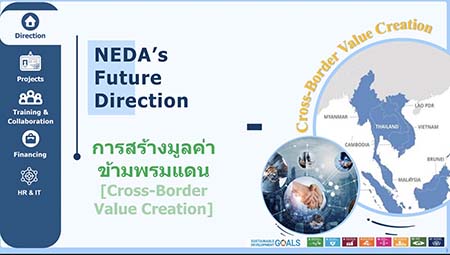 โดยแบ่งเป็นโครงการความร่วมมือทางการเงินและทางวิชาการ (Financial Cooperation and Technical Cooperation) จำนวน 55 โครงการ รวม 24,189.43 ล้านบาท และโครงการด้านความร่วมมือในการถ่ายทอดองค์ความรู้ให้กับประเทศเพื่อนบ้าน (Capacity Building) จำนวน 48 โครงการ รวม 36.90 ล้านบาท 2. ทิศทางการดำเนินงานอนาคต: มุ่งสู่การสร้างมูลค่าข้ามพรมแดน NEDA กำลังก้าวสู่ทิศทางใหม่ที่เน้นการสร้างมูลค่าข้ามพรมแดน (Cross-Border Value Creation) ซึ่งประกอบด้วย 3 เสาหลักสำคัญ คือ (1) การส่งเสริมเศรษฐกิจข้ามพรมแดน (Cross-Border Economic Enhancement) (2) การสร้างผลตอบแทนทางสังคมข้ามพรมแดน (Cross-Border Social Return Initiative) และ (3) การลดผลกระทบต่อสิ่งแวดล้อมข้ามพรมแดน (Cross-Border Environment Impact Reduction