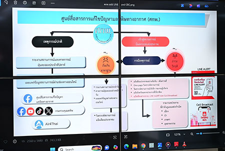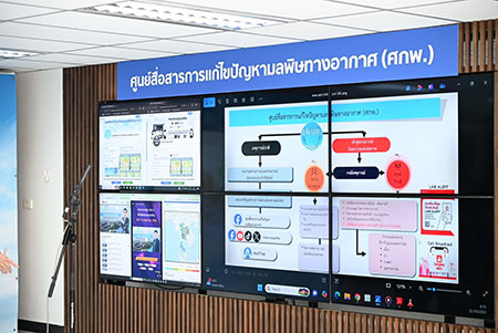 รัฐมนตรีว่าการกระทรวงทรัพยากรธรรมชาติและสิ่งแวดล้อม กล่าวว่า ศูนย์สื่อสารการแก้ไขปัญหามลพิษทางอากาศ (ศกพ.) เป็นศูนย์ปฏิบัติการด้านการสื่อสารสถานการณ์ฝุ่นเพียงศูนย์เดียวของประเทศ โดยมีการบูรณาการความร่วมมือจากหลายภาคส่วนทั้งภาครัฐและภาคเอกชน อาทิ กรมอุตนิยมวิทยา GISTDA กระทรวงมหาดไทย กรุงเทพมหานคร บริษัท ไลน์ คอมพานี (ประเทศไทย) จำกัด และบริษัท แอดวานซ์ อินโฟร์ เชอร์วิส จำกัด (มหาชน) บูรณาการข้อมูลที่สำคัญในการใช้เฝ้าระวังและแจ้งเตือนสถานการณ์ PM2.5