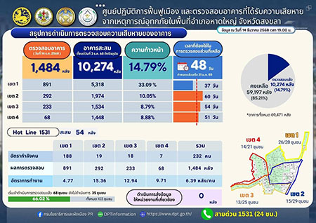 กรมโยธาธิการและผังเมือง (ยผ.) เผยความสำเร็จ ร่วมเป็นส่วนหนึ่งในการปิดภารกิจฟื้นฟูเมืองหาดใหญ่ จ.สงขลา ยืนยันยังคงระดมนายช่าง วิศวกรอาสา สถาปนิก จาก 17 จังหวัด และหน่วยงานพันธมิตรเพื่อเดินหน้าภารกิจตรวจสอบความมั่นคงแข็งแรง และประเมินความเสียหายอาคาร – บ้านเรือนของประชาชนในพื้นที่อย่างต่อเนื่อง