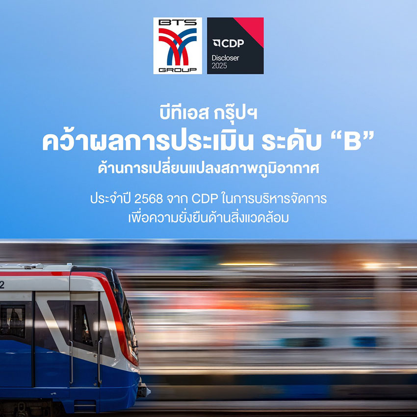 บีทีเอส กรุ๊ปฯ คว้าผลการประเมิน ระดับ “B” ด้านการเปลี่ยนแปลงสภาพภูมิอากาศ จาก CDP ประจำปี 2568
