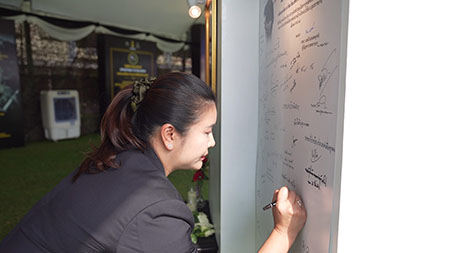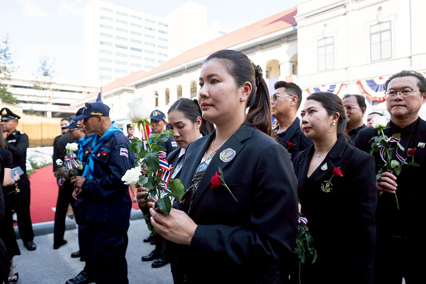 พิธีวางพวงมาลา, การบรรเลงเพลงพญาโศก ผ่านวงดุริยางค์ และการยืนร่วมกันร้องเพลง “ความฝันอันสูงสุด” เป็นต้น