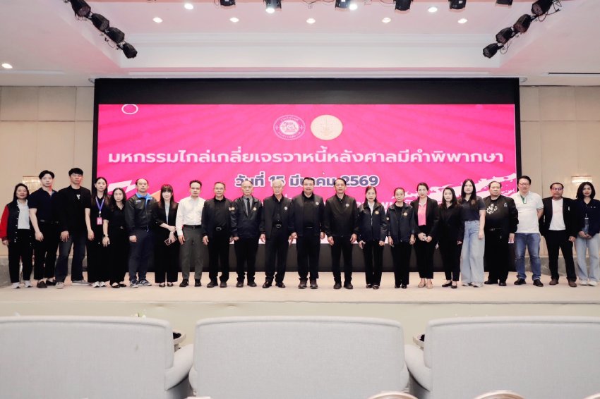 วันที่ 15 มีนาคม 2569 เวลา 09.30 น. นายเสกสรร สุขแสง อธิบดีกรมบังคับคดี เป็นประธานในพิธีเปิดงานมหกรรมไกล่เกลี่ยเจรจาหนี้หลังศาลมีคำพิพากษา ในพื้นที่กรุงเทพมหานคร โดยมีนายเฉลิมชัย บัวจันอัด รองอธิบดีกรมบังคับคดี เป็นผู้กล่าวรายงาน ซึ่งมีผู้บริหารและเจ้าหน้าที่กรมบังคับคดี พร้อมด้วยหน่วยงานภาครัฐ และภาคเอกชน เข้าร่วมงานดังกล่าว ณ โรงแรม เอส ดี อเวนิว กรุงเทพมหานคร ภายในงานมีสถาบันการเงิน และบริษัท (เจ้าหนี้ตามคำพิพากษา) จำนวน 20 แห่ง ประกอบด้วย 1.ธนาคารออมสิน 2.ธนาคารอาคารสงเคราะห์ 3.ธนาคารกรุงไทย จำกัด (มหาชน) 4.ธนาคารกรุงเทพ จำกัด (มหาชน) 5.ธนาคารกสิกรไทย จำกัด (มหาชน) 6.บริษัทบริหารสินทรัพย์กรุงเทพพาณิชย์ จำกัด (มหาชน) 7.บริษัท บริหารสินทรัพย์สุขุมวิท จำกัด 8.บริษัทบริหารสินทรัพย์เจ จำกัด 9.บริษัทบริหารสินทรัพย์เจเค จำกัด 10.บริษัทบริหารสินทรัพย์เจเอ็มที เซอร์วิส จำกัด (มหาชน) 11.บริษัทบัตรกรุงไทย จำกัด (มหาชน) 12.บริษัท อิออน ธนสินทรัพย์ (ไทยแลนด์) จำกัด (มหาชน) 13.บริษัท โตโยต้า ลีสซิ่ง (ประเทศไทย) จำกัด 14.บริษัท ฮอนด้า ลีสซิ่ง (ประเทศไทย) จำกัด 15.บริษัท บริหารสินทรัพย์เอทีเอ็ม จำกัด 16.บริษัท กลางคุ้มครองผู้ประสบภัยจากรถ จำกัด 17.ธนาคารพัฒนาวิสาหกิจขนาดกลางและขนาดย่อมแห่งประเทศไทย 18.บริษัท บริหารสินทรัพย์ ธนาคารอิสลามแห่งประเทศไทย 19.ธนาคารอิสลามแห่งประเทศไทย และ20.ธนาคารยูโอบี จำกัด มหาชน เข้าร่วมงานเจรจาไกล่เกลี่ย ฯ ดังกล่าว การจัดงานมหกรรมไกล่เกลี่ยเจรจาหนี้ในครั้งนี้ เพื่อเป็นการช่วยเหลือและบรรเทาความเดือดร้อนทางด้านหนี้สินของภาคครัวเรือนช่วยให้ประชาชนมีคุณภาพชีวิตที่ดีขึ้น ภายในงานได้จัดบูธนิทรรศการบริการให้คำปรึกษาทางกฎหมายเกี่ยวกับการบังคับคดีและแจกเอกสารประชาสัมพันธ์